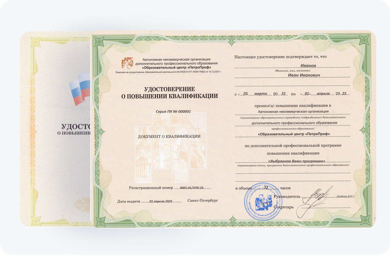 Благодаря «ПетроПроф» я получил структурированные знания и уверенность в своих силах. Особенно понравилось актуальность представленных образовательных программ, а также возможность обучения дистанционно в онлайн формате. За мной был закреплен менеджер, который курировал меня от вводной консультации до получения сертификата. Все организационные вопросы решались в один клик. Если вы сомневаетесь — не раздумывайте! Это инвестиция в себя, которая точно окупается. Всем знакомым, кто хочет расти профессионально, я теперь рекомендую только «ПетроПроф»!